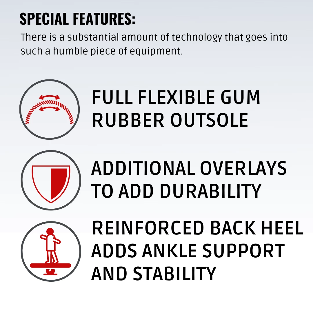 - Full flexible gum rubber outsole provides a secure grip and pinpoints pivots