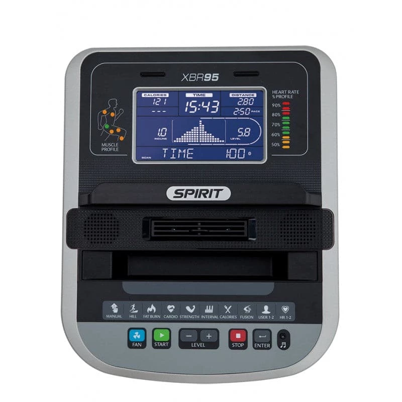Durable, comfortable & smooth are all qualities of Spirit Fitness semi-recumbent bikes. Easy adjustments, bright LCD screens, cooling fans & mesh back seats are standard on all models. The SXBR95 is our top of the line semi-recumbent bike. It features additional programs, a heavier flywheel, 40 levels of resistance & a generator for cord-free operation!