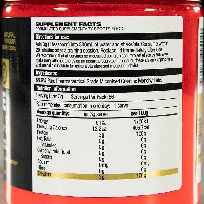 - Creatine Monohydrate is a 100% pure, pharmaceutical grade creatine supplement. There are no fillers, no additional ingredients, just pure creatine for enhanced, quality gains in muscle size and strength.