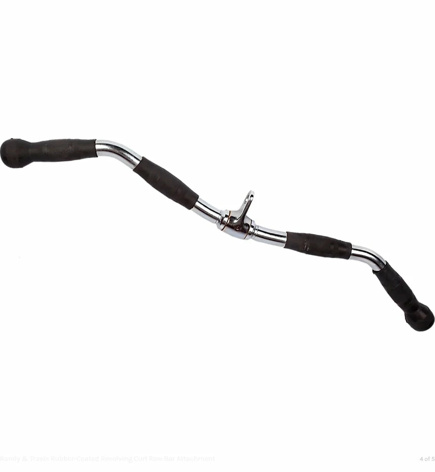 Solid chrome cable curl and Tricep Bar with a revolving feature. Featuring rubber hand gripping areas and a beautiful chrome plated finish, you may use this 28-inch long curl bar with any free cable machine for bicep curls and tricep press downs. Curl bar revolves freely in pivot housing for smooth exercise motion.