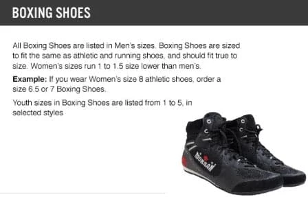 Please Note: All Boxing Boots are listed in Men’s sizes.ย Boxing shoes are sized to fit te same as athletic and running shoes and should fit true to size.