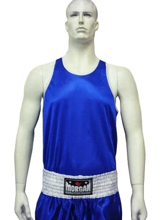 Morgan Boxing Singlet is the perfect blend of dazzle polyester with micro-moisture wicking lining to create a sleek, bold, and incredibly super lightweight, restriction-free boxing singlet that is guaranteed to perform and impress. The singlet is crafted in sleek racer back style with shoulder straps that stay secure during training and competition. Cut extra-long to stay tucked in during bouts. It is incredibly lightweight, moisture-wicking, so it remains cool and dry. This is also fully machine washable.