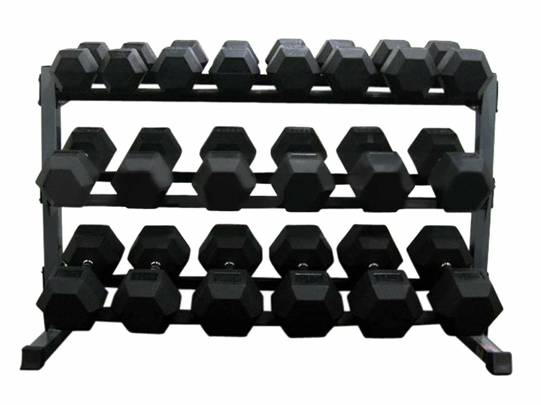 1-50kg Rubber Hexagonal Dumbell Set With Two x 3-Tiers Dumbell Racksย ย