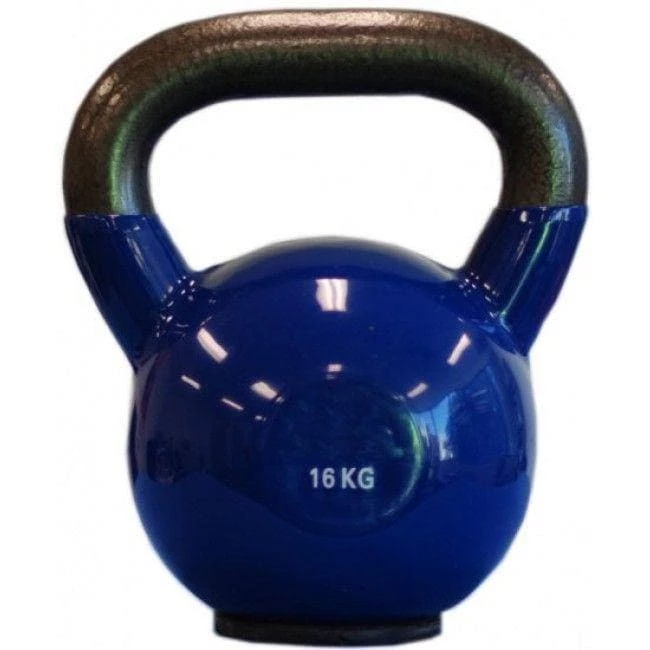 - Our New-look kettlebells are of excellent quality. The handle of the kettlebell is made of STEEL, instead of cast iron and has coloured Vinyl outer covering!