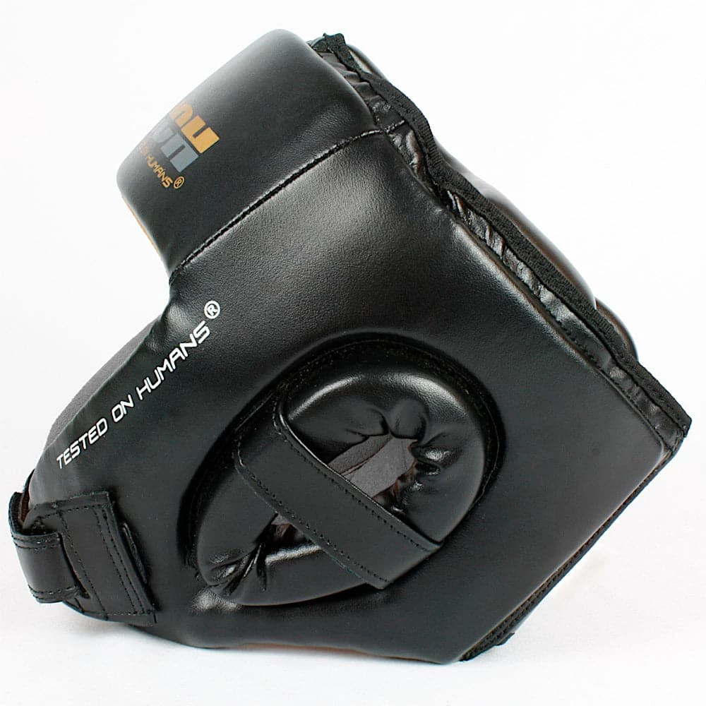 - Reinforced steel loop “no choke” deluxe chin velcro strap