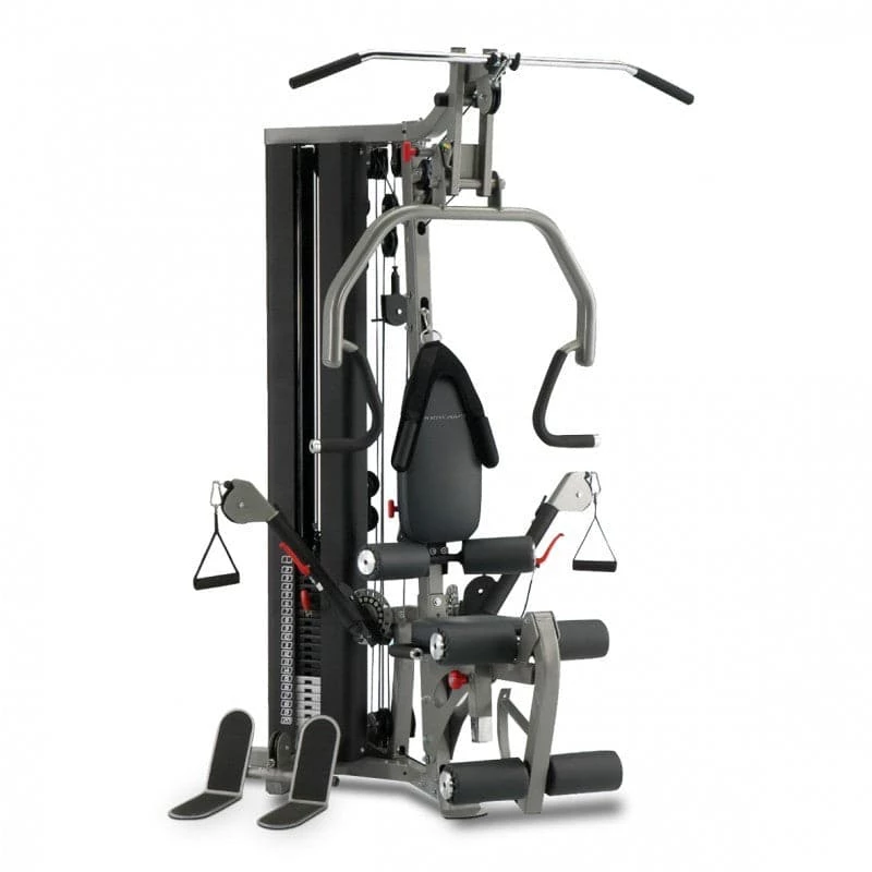 Accessories: Lat / pull bar curl bar, ankle strap, and 2 single handles included.