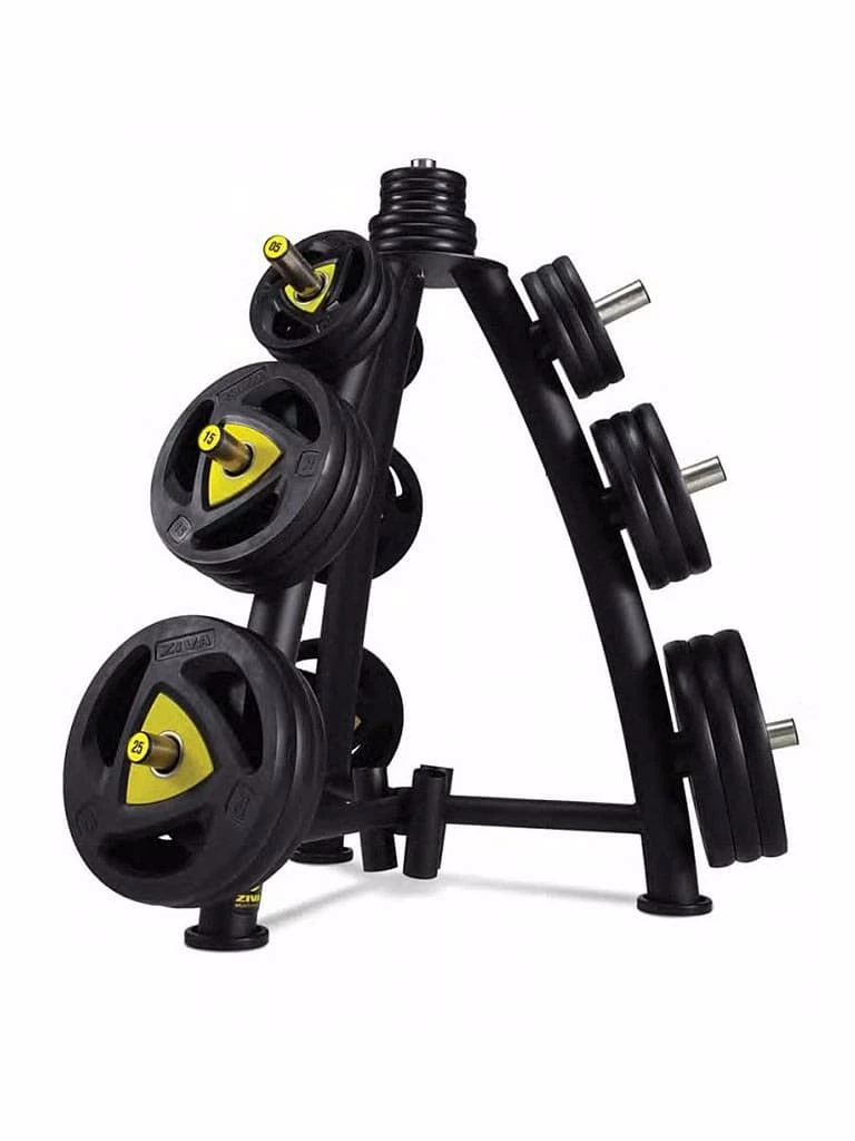 The Ziva ST TRI LEG Weight Disc and Bar Commercial-Grade Storage Rack is designed to fit your weights spic and span.