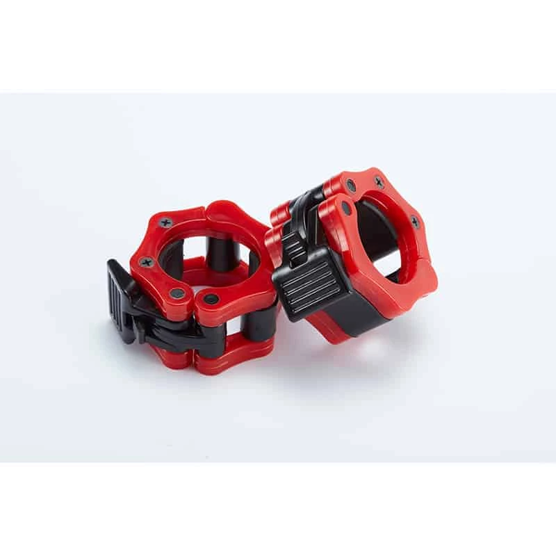 The Ziva Olympic clamp-style collars securely snap onto barbells. They feature quick and simple unlatching for ease of adding/removing weight plates.