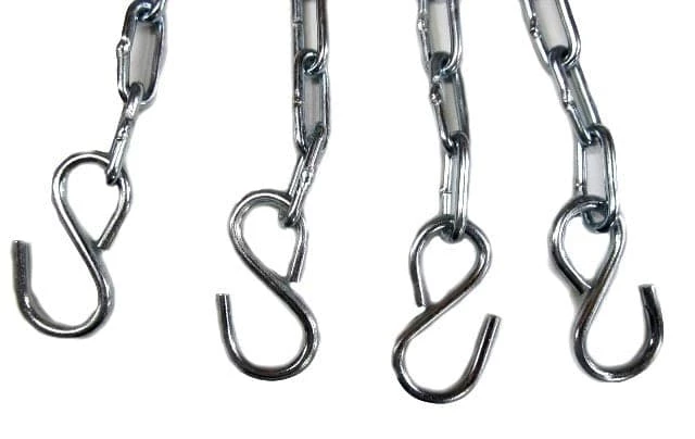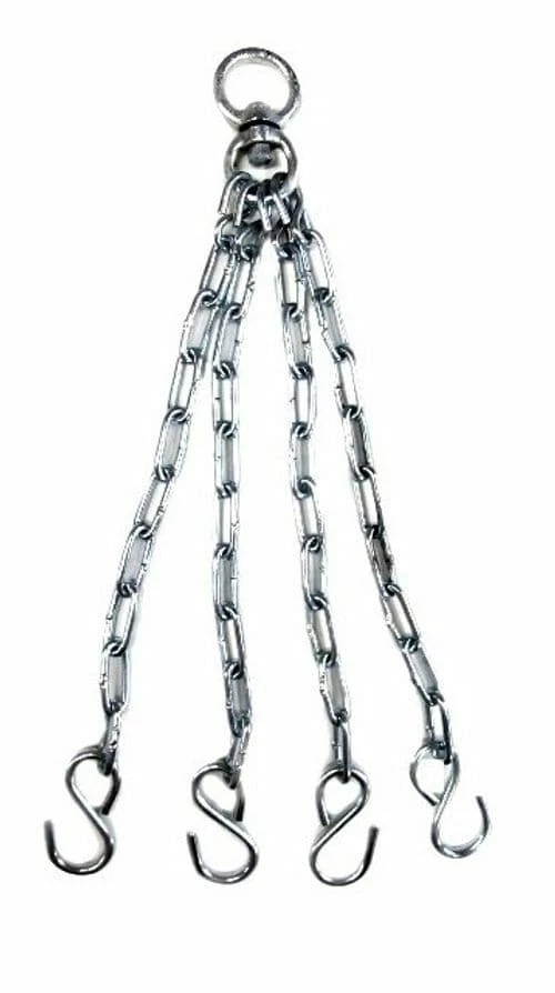 hanging chains also come with a 360-degree rotating swivel,ย 4 oversize S hooks to secure your punch bags, and approx.ย 30 cm in length ensures that you can hang any of our punch bags on these chains.